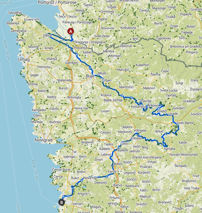 Zbirno mesto bo malo pred mejnim prehodom Sečovlje. Vozili bomo po trasi precej znane nekdanja ozkotirne železniške proge Trst – Poreč. Ime je dobila po besedi Parenzo – italijanskem poimenovanju mesta Poreč, zaradi česar jo imenujemo tudi Porečanka. Pomenila je povezavo zaledja z obmorskimi kraji in je tako močno prispevala k gospodarskemu razvoju Istre. Na sobotni turi bomo prevozili zgolj Hrvaški del Parenzane.