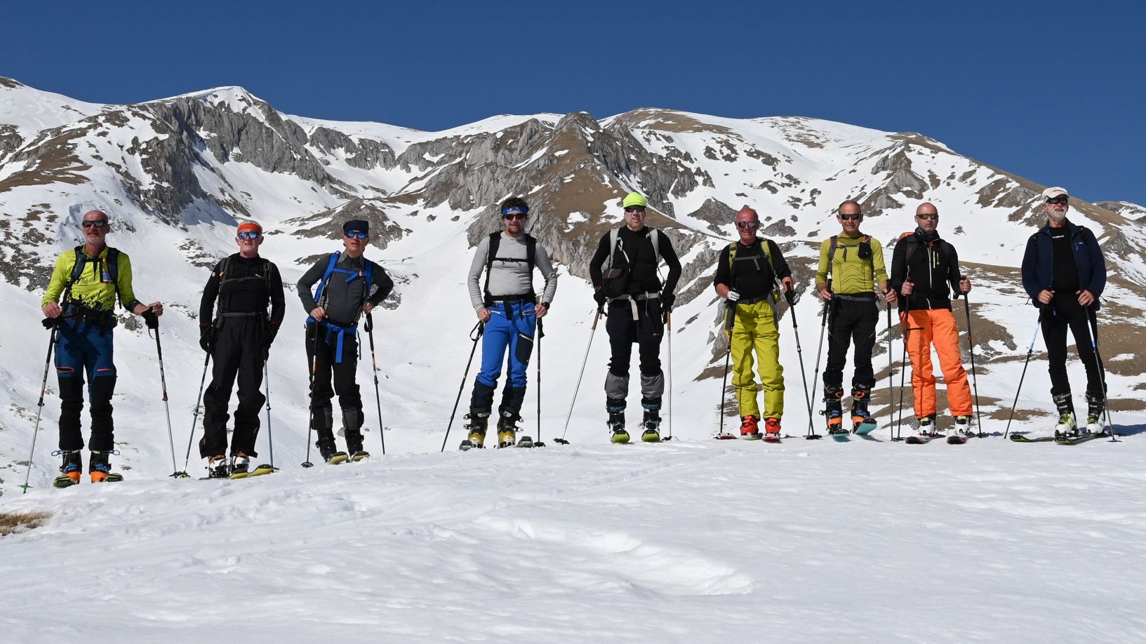 Po vrnitvi na planoto smo se zato prepustili njegovemu vodstvu in prilezli do nekaj čez 2300 m. Na sam greben nismo našli primernega prehoda, zato smo odnehali. Spet smo uživali v vijuganju po odmrznjenih pobočjih grabna, kjer si konte oziroma vrtače sledijo druga za drugo. Le malo popaziti je treba, da je hitrosti na njem koncu še toliko, da se brez štamfanja prepelješ v naslednjo vrtačo. 850 višincev.
