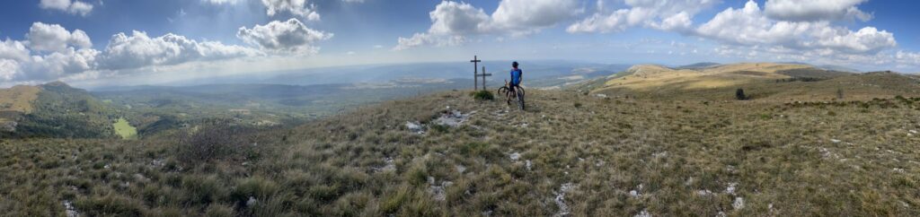 Sledil je glavni vzpon ture. Najprej klasičen makadam in gozdnata pokrajina. Gozda je zmanjkalo, zapeljali smo v malce drugačen, prazen, divji kraški svet. Hribi polni posušene trave in lepe enoslednice so delovale čarobno. Osvojeni vrhovi so si sledili drug za drugim Kojnik, Golič, Nadglavinjak in Kavčič.