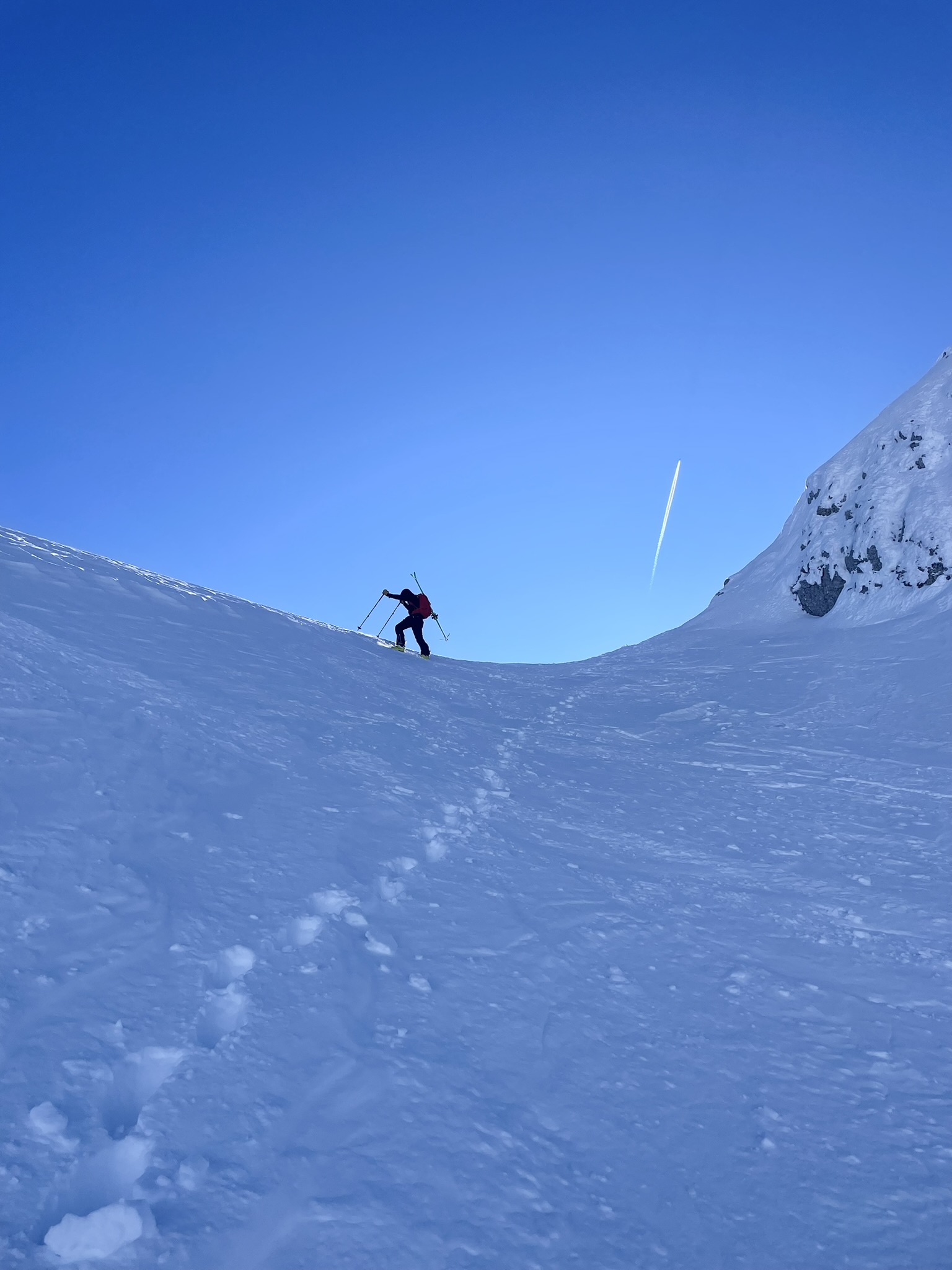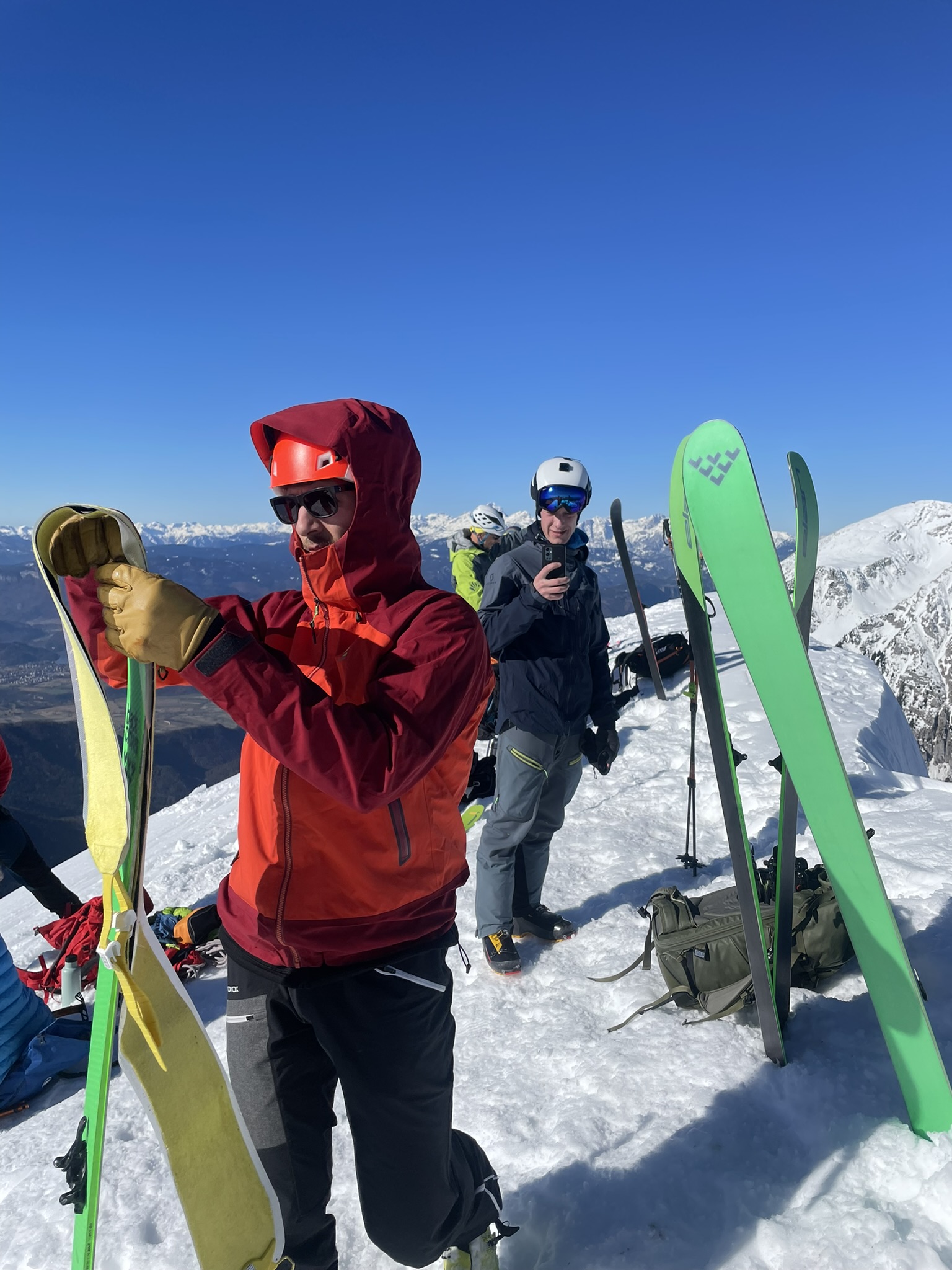 Parkiramo na planini in se čez šentanski plaz podamo na Begunjščico. Severna stran je do dveh kar leden, tako da se na vrh in nazaj spustimo v trdi podlagi. Hitra tura za sončen petek – bolje kot služba.
