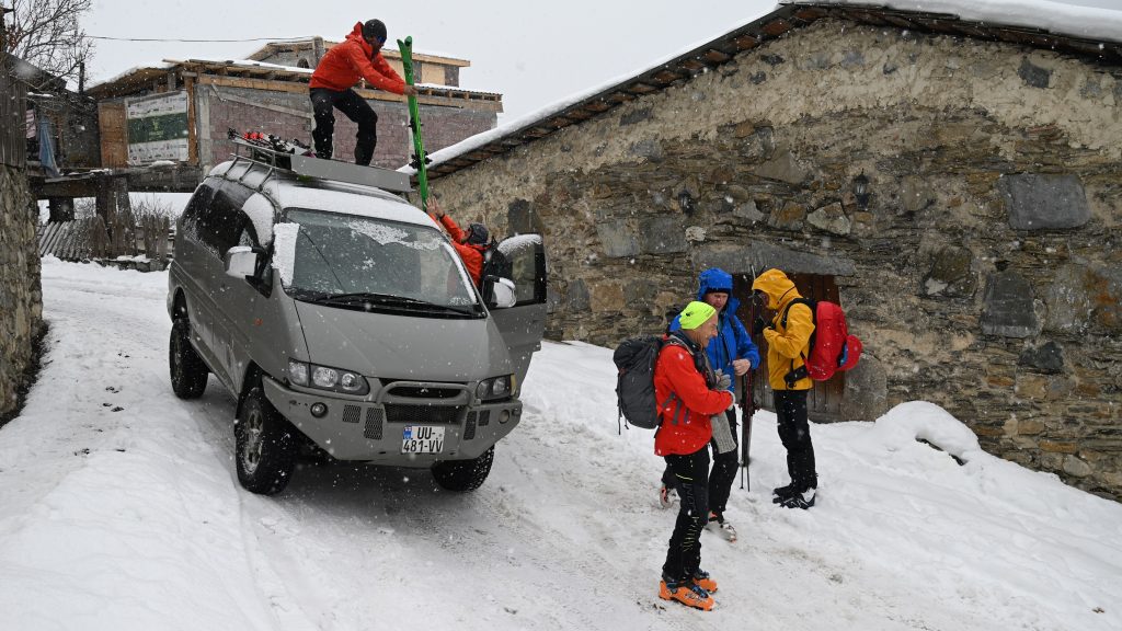 Najprej smo se odpravili pod Gulispas, naslednja dva dneva pa smo se preselili v 45 km oddaljeno gorsko vasico Ušguli na višini nekaj čez 2000 m in odsmučali tritisočaka Gvibari in Lamaria.