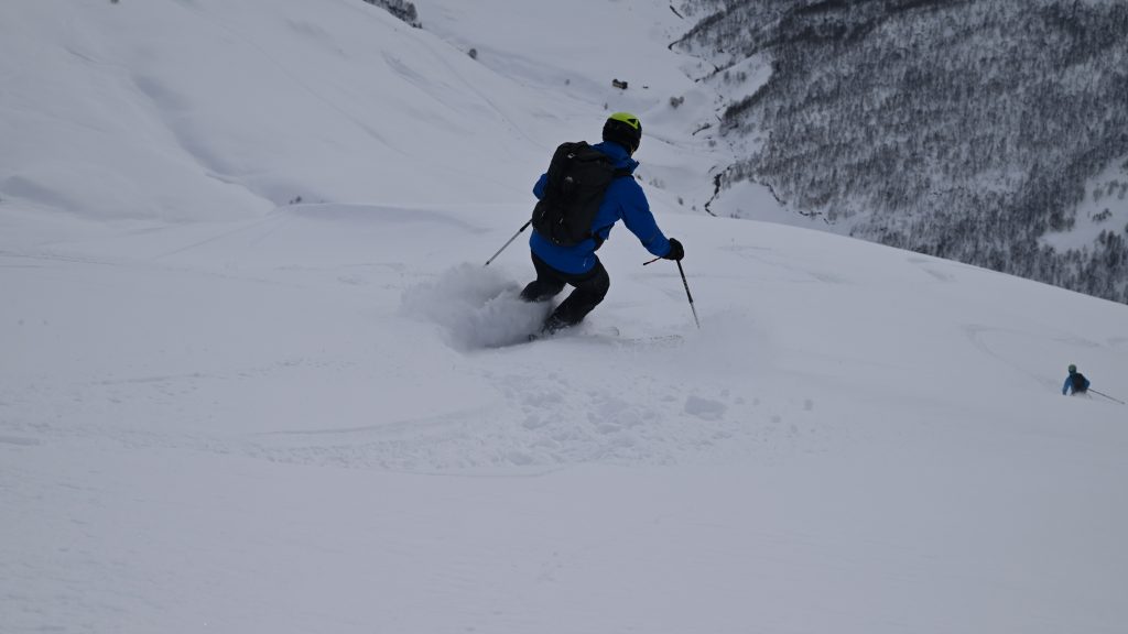 Sneženje v prejšnjih dneh, predvsem pa nočne temperature globoko pod ničlo so ustvarile odličen pršič, tako da smo v njem lahko tudi več kot tisočmetrske spuste odsrfali od vrha do tal.