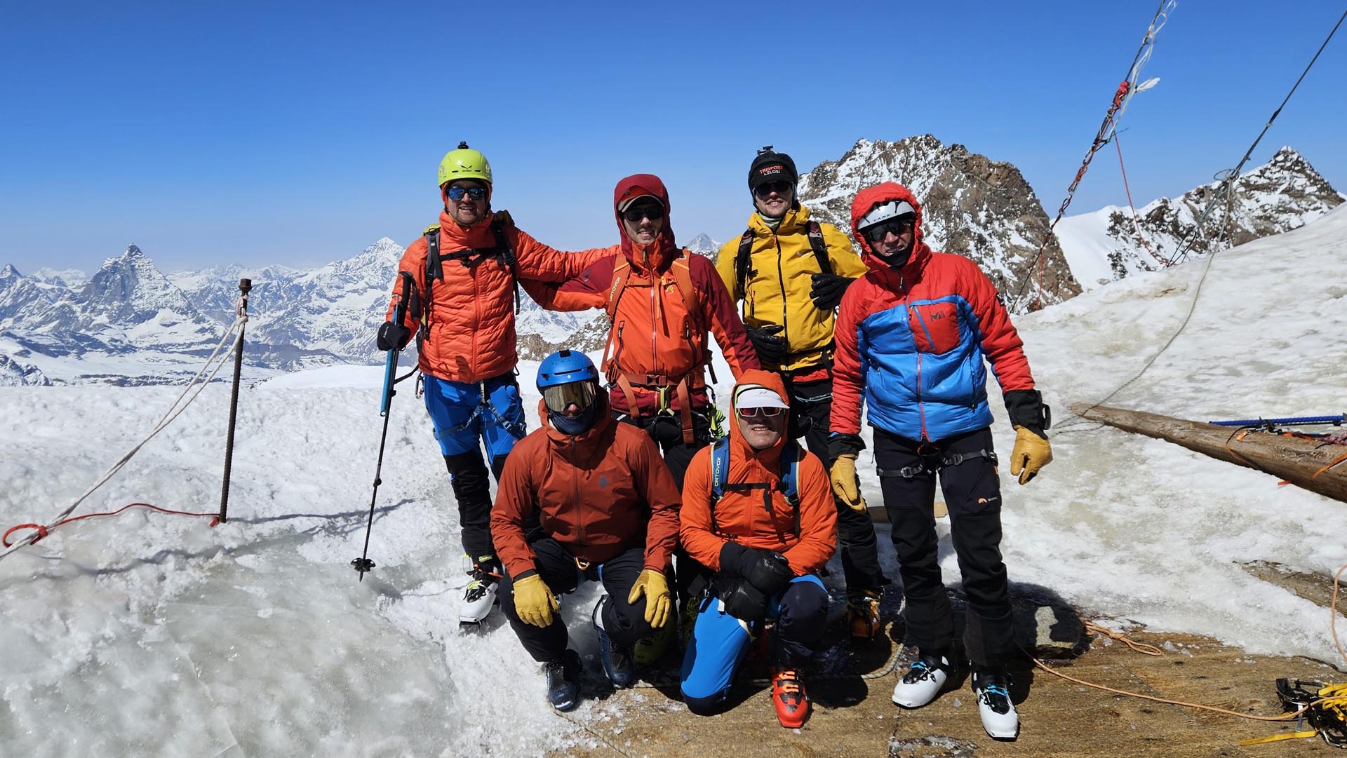 Mlajša polovica ekipe (Jure, Nejc, Domen in Obi) si je dala duška še z dodatnimi dvesto višinci vzpona na Parrotspitze (4443 m).