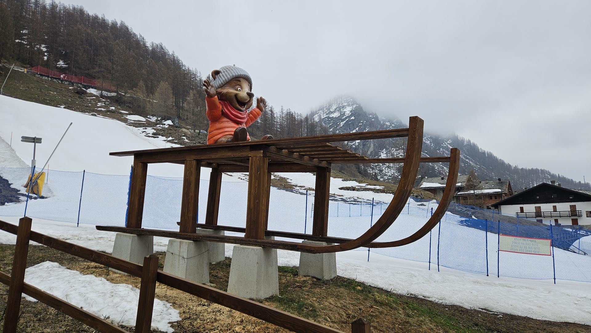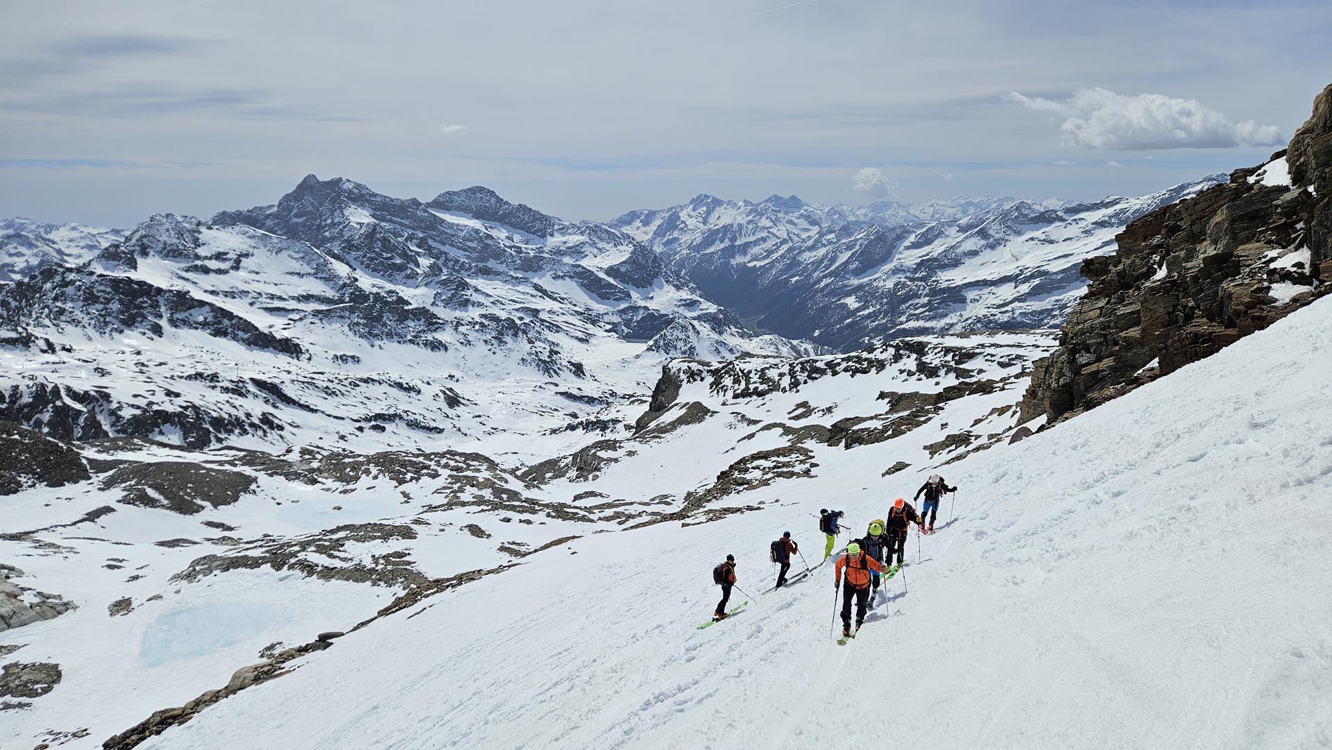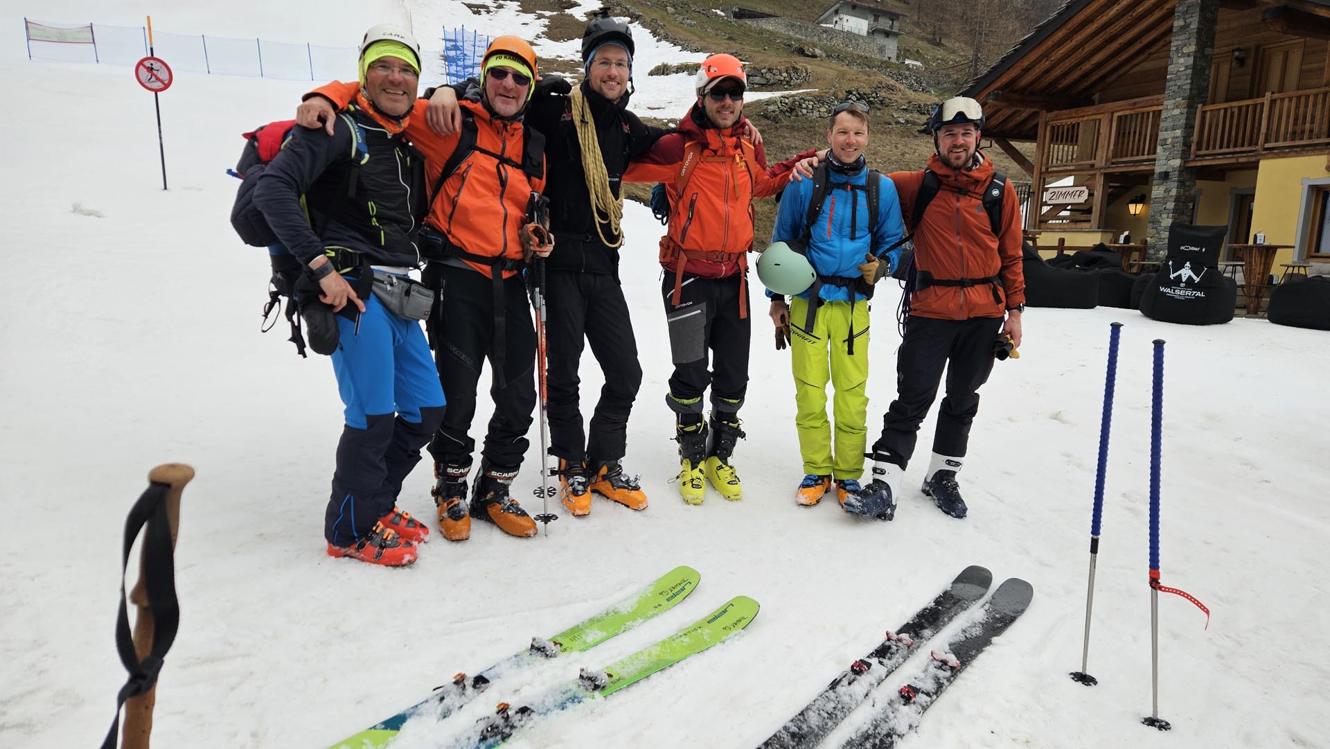Ekipa 7 članov turnosmučarskega in alpinističnega odseka PD Kamnik (Andrej, Sandi, Aleš, Nejc, Jure, Domen in Bogdan) dopolnjena z zunanjim članom AO Radovljica (Ožbej) se je v Aosto odpravila drugi aprilski vikend. Nekateri so morali v četrtek opraviti še celotne delovne obveznosti, zato smo na pot lahko krenili šele v popoldanskih urah. Blizu Novare smo prespali v novem turističnem kampu z lesenimi bungalovi in toplo (večerno) kopeljo. Dobro ime na trgu si kot kaže šele ustvarjajo, zato trenutno ponujajo promocijsko, skoraj smešno nizko ceno 22,5 € za spanje z obilnim zajtrkom.