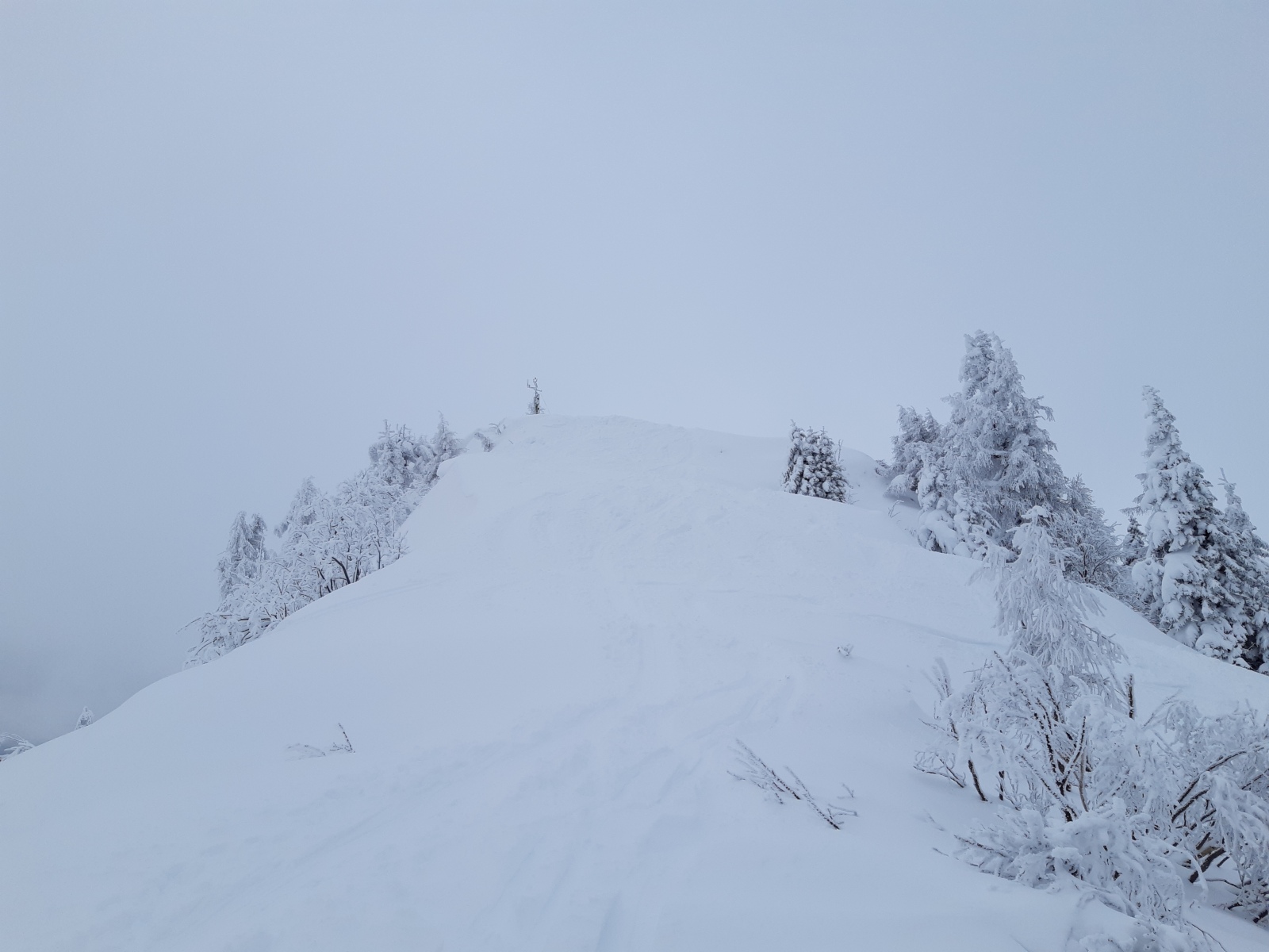Z vrha je smuka odlična, megla se je razkadila, tako da sem lahko na polno prašil proti Zelenici oz. po poseki levo od koče. Od tam pa še enkrat nazaj in ponovi vajo.